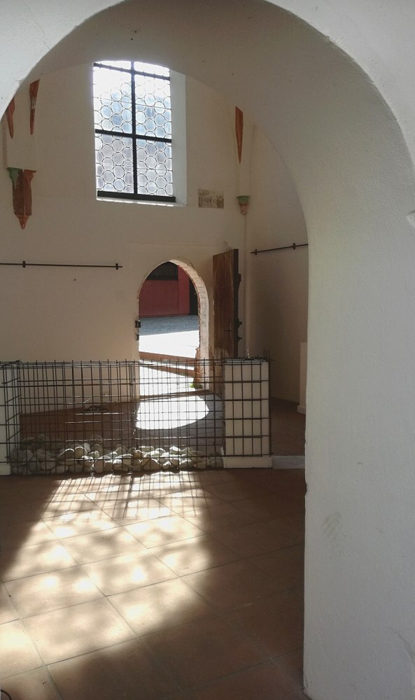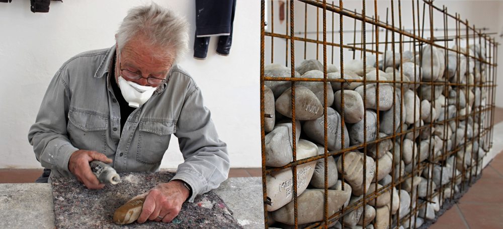 Es mutet wie eine Ironie des Schicksals an, dass ich zum Schutz vor dem Corona-Virus völlig isoliert von der Außenwelt hinter den massiven Backsteinmauern der Kapelle des Schutzpatrons der Pestkranken Kieselsteine mit den Namen der Menschen graviere, die auf der Flucht vor dem Elend umgekommen sind. FESTUNG EUROPA heißt die Installation in der Kapelle, deren Herzstück eine Mauer aus gravierten Kieselsteinen ist, die in Ost-West- Ausrichtung zwischen der nördlichen und südlichen Pforte der Kapelle steht.